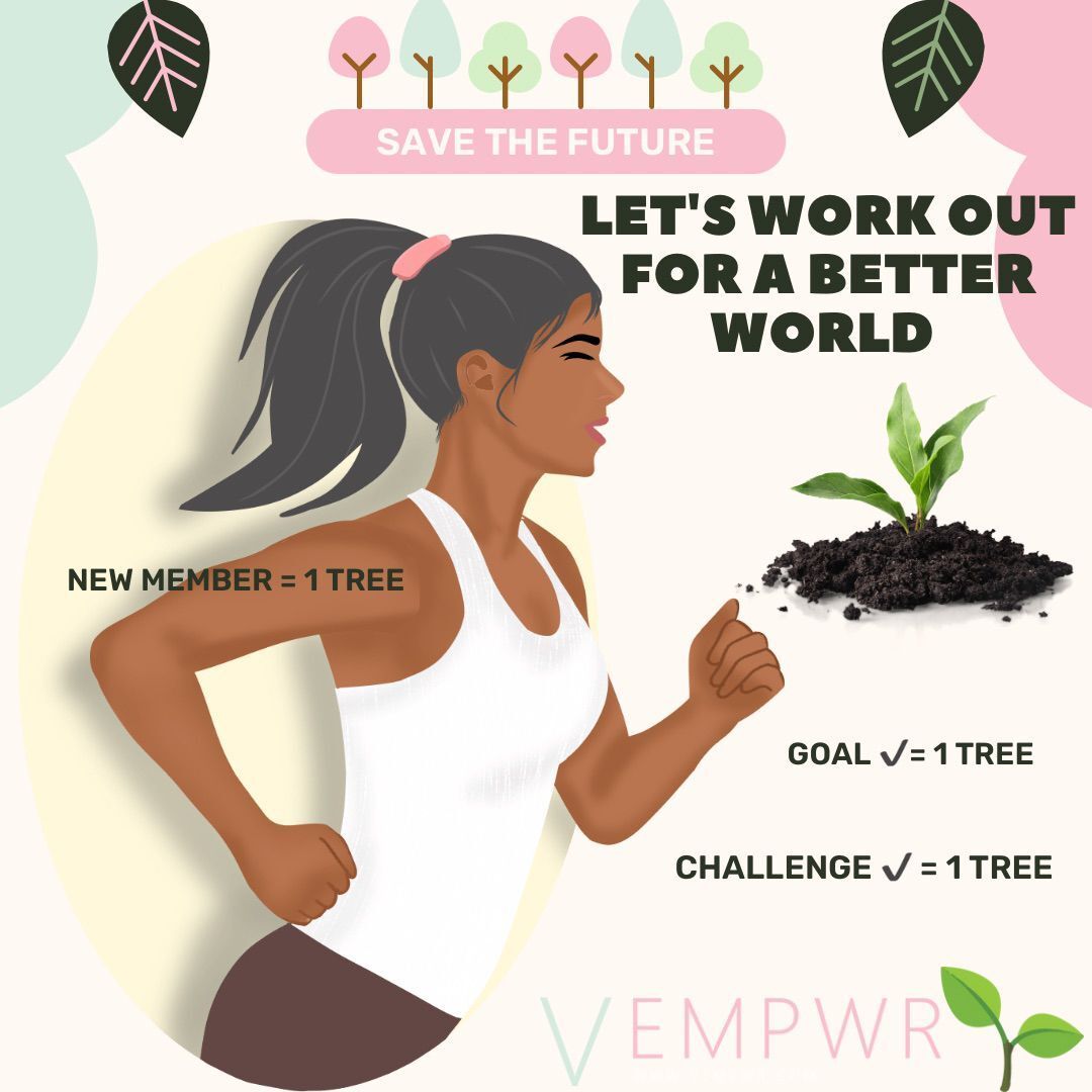 Work out together to create a better world. ‘1 new member = 1 tree’.